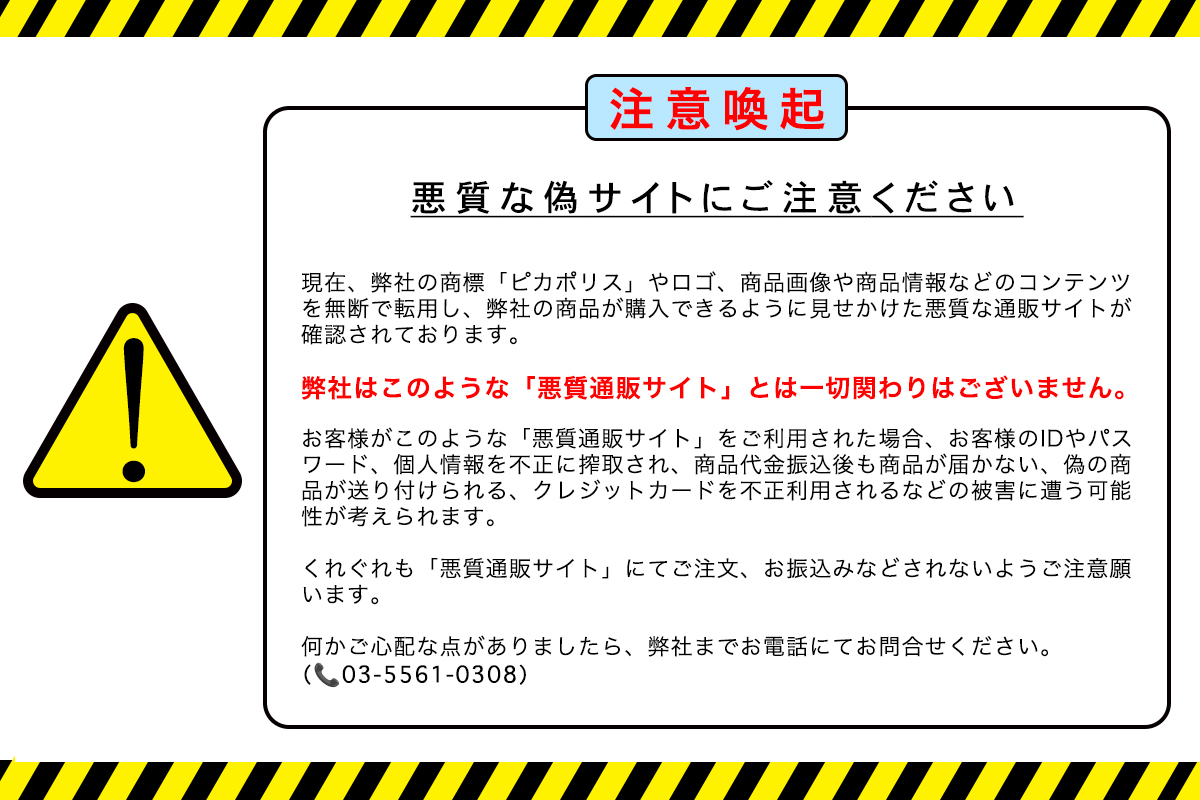 ■ご注文受付 24時間365日受付中 ■メールでのお問合せ shopmaster@pikapolice.co.jp ■営業時間 平日 8:30~18:00 *平日18時以降、または土日祝日のご注文、メール対応は翌営業日となります。 ■定休日 土日祝日 *お急ぎの方は年中無休365日対応の電話受付をご利用ください。 ------------------ 【電話受付】 ■電話番号 03-5561-0308 ■受付時間 年中無休 8:30~20:00 |