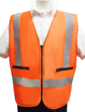 防犯パトロールベスト(蛍光タイプ 橙色地×布反射テープ)