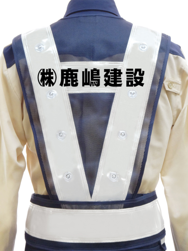 • 【名入り】新型ファスナー式LEDベスト(白テープ/メッシュ・LED色選択可) 10枚より